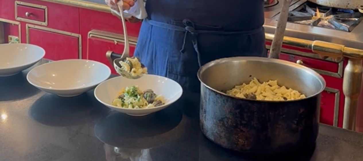 Refined, coastal, and full of character. This dish brings together the elegance of French cuisine and the craft of Italian pasta-making. The delicate Trafilata pasta serves as a perfect canvas for the briny richness of fresh clams, while a splash of Champagne adds brightness and depth to the broth. Finished with aromatic chervil and tender spring onions, it’s a dish that captures both simplicity and sophistication in every bite. This recipe is part of the Pasta e Basta! project by Pastificio dei Campi and JRE-Jeunes Restaurateurs.