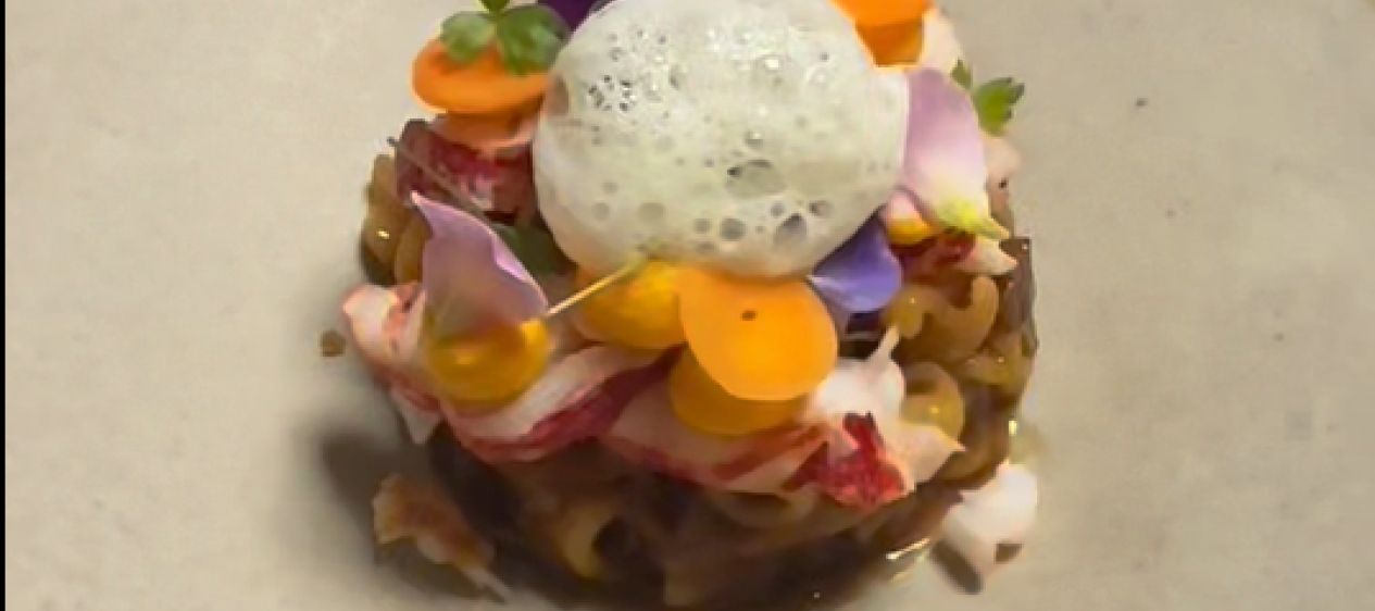 Pasta with Opal Coast Lobster, French Onion–Beer Sauce and Lovage Foam