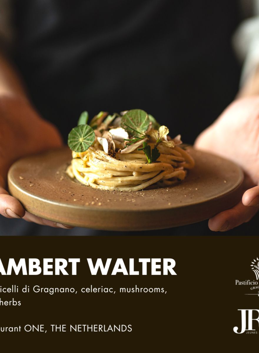 Lambert Walter from the Restaurant ONE in The Netherlands, created a dish with Vermicelli di Gragnano, dried celeriac, mushrooms and mixed herbs.