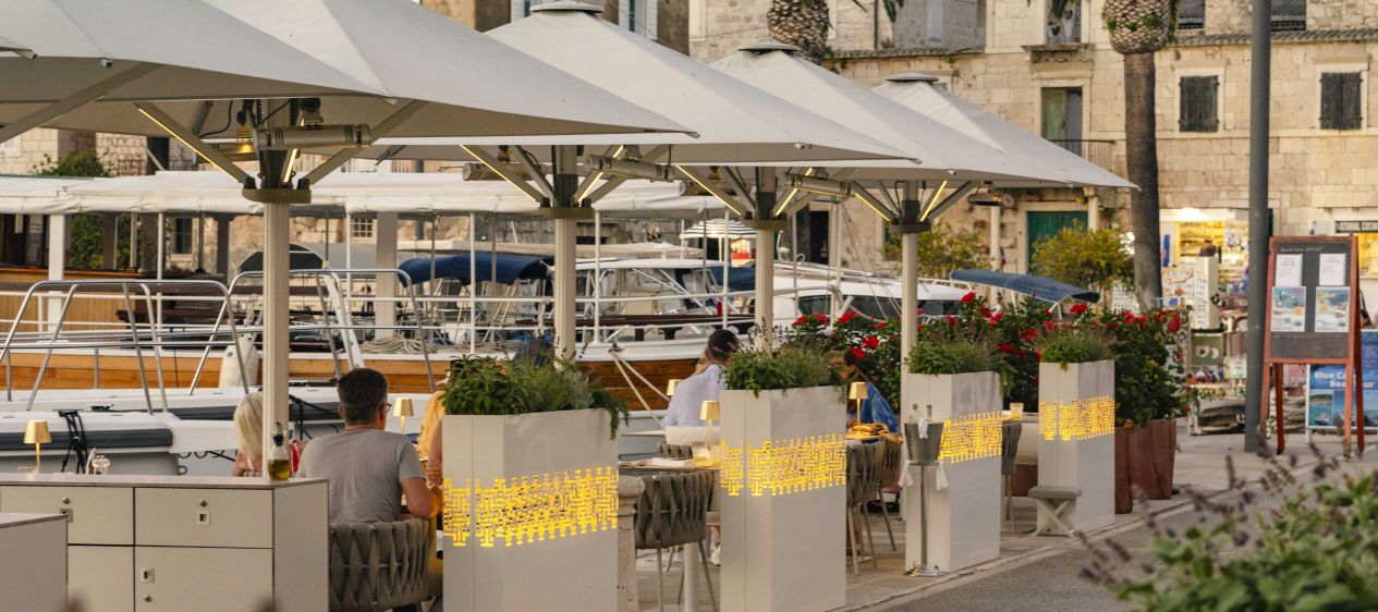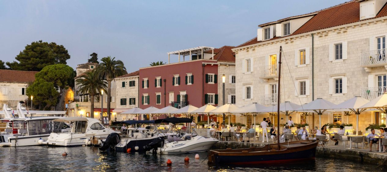 "Hotel and restaurant alike are built right at the waterfront. Every evening when the heat of the day subsides, the harbour promenade of Sutivan transforms into a Mediterranean catwalk, where locals and guests take strolls. The Lemongarden restaurant is right in the middle of all the hustle and bustle and is the perfect place to watch this spectacle. A somewhat quieter setting is found where you can sit at the tables across the way right on the water. From here, guests can watch the fish splash about the water, and if you reach out your hand, you can almost touch one of the boats that might have caught your dinner."