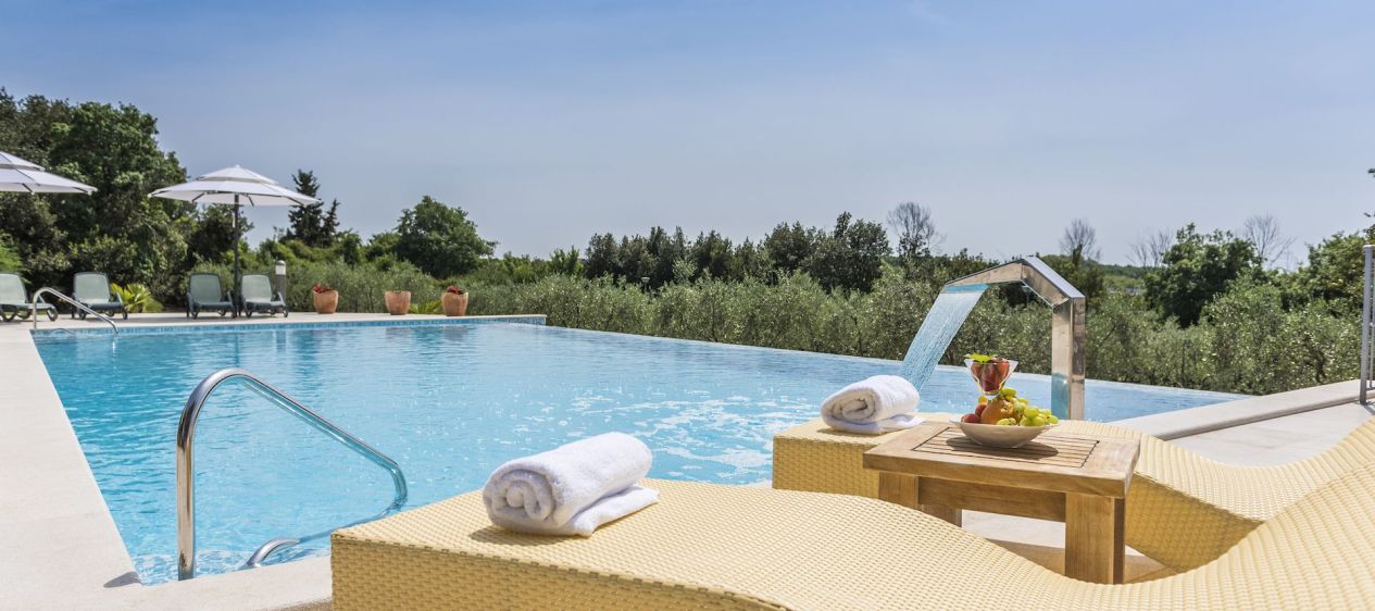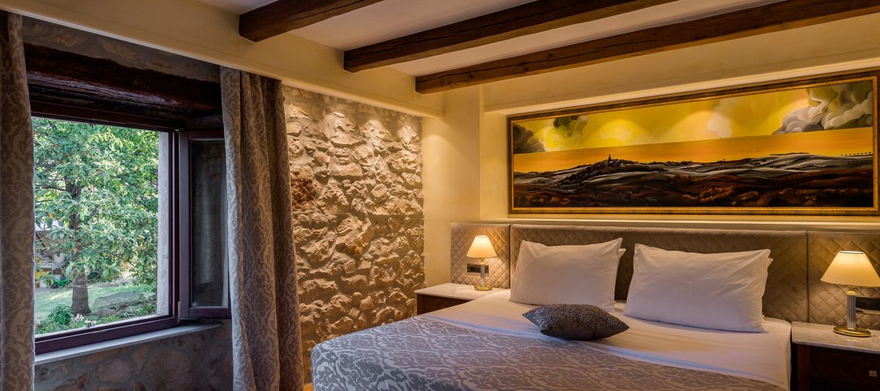 Boutique hotel San Rocco lies in the very heart of the village of Brtonigla, but nonetheless exudes tranquillity. The hotel is surrounded by a large park and an olive grove where you can fully unwind, read a book in the shade, or just daydream and doze off. The hotel has 14 double rooms. The interior features traditional details made of wood, stone, and iron. There are five room types to choose from: Classic, Comfort, Tradition, the Cavallier Suite, and the Vintage Suite. Each room is equipped with a satellite TV and Wi-Fi. Some rooms also have a hydro massage bath and offer a view of the park, the swimming pool, the sea, or the village. As a guest, you’re free to use the hotel’s swimming pool and sauna.