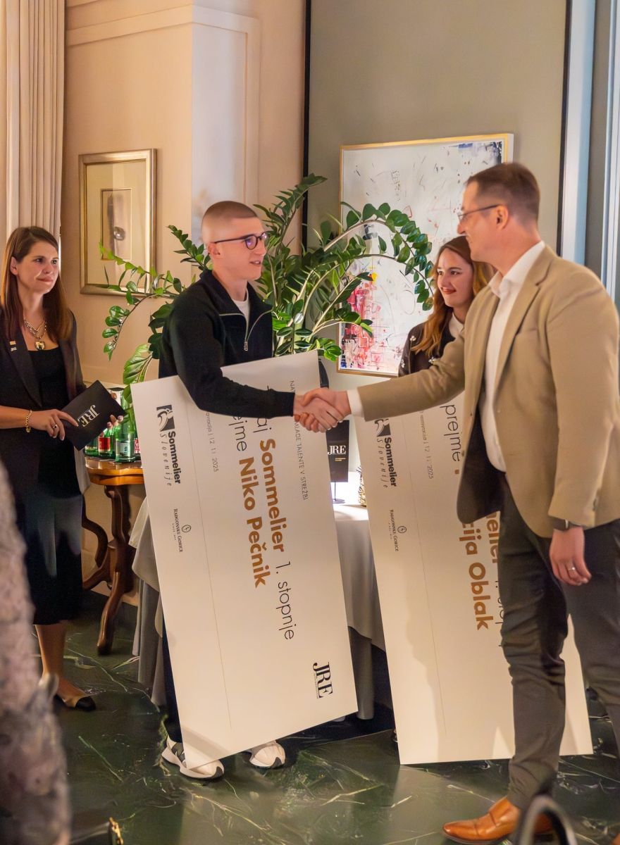 Skozi pogovor z njim razkrivamo, zakaj je izobraženo strežno osebje ključ do uspeha gostinstva prihodnosti in zakaj je znanje o vinu več kot le strokovno orodje – je odgovornost do gosta, sodelavcev in samega poklica. Na koncu dogodka sta Društvo Sommelier Slovenije in JRE-Slovenija dvema nadebudnima mladima talentoma – Patriciji Oblak in Niku Pečniku – podarila tečaj Sommelier I. stopnje, kot simbol podpore novi generaciji, ki bo s strastjo in znanjem soustvarjala prihodnost slovenske gastronomije.