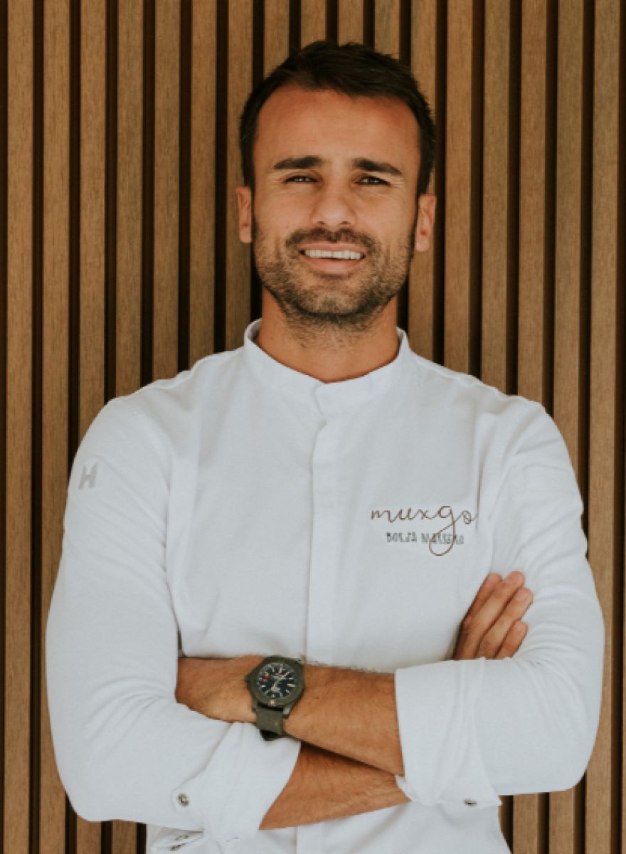 El chef Borja Marrero nació y creció en Gran Canaria, donde conoció la cocina local y los ingredientes que ofrece su isla natal. Comenzó su carrera estudiando en la prestigiosa Escuela Hofmann de Barcelona antes de viajar a Estados Unidos y México, donde abrió su propio restaurante, al tiempo que trabajaba para grupos hoteleros mexicanos y celebridades locales. De vuelta a su Las Palmas natal, puso en marcha su propio proyecto KM0, totalmente sostenible y con un formato de "círculo cerrado" que le llevó a ser conocido en la península. Ahora, Borja se ha embarcado en la siguiente etapa de su carrera abriendo MuXgo en el Hotel Sostenible Catalina Plaza de la capital grancanaria donde ha unido su experiencia y su enfoque de alta calidad, KM0.