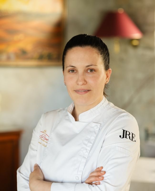 En San Rocco, la chef Floriana Ružić lidera la cocina con un profundo respeto por la tradición istriana y un espíritu audaz y creativo. En la última década, ha perfeccionado su arte bajo la mentoría de Teo Fernetich, fusionando la herencia local con técnicas contemporáneas. Su estilo característico radica en elevar ingredientes humildes, como la cebada, un alimento básico de la cocina popular istriana, combinándolos con elementos lujosos como las trufas. Su enfoque innovador y su dedicación a los productos regionales y de temporada le valieron el Trofeo Joven Talento de Gault&Millau en 2020. Cada plato que crea es un homenaje a la rica identidad culinaria de Istria, reinterpretada para los tiempos modernos.