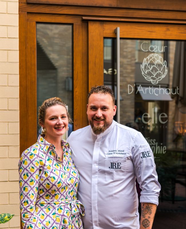 Frédéric y Elisabeth Morel abrieron juntos su primer restaurante en octubre de 2019 y son la primera generación que dirige un negocio familiar. La cocina de Frédéric Morel está marcada por su educación bretona, su herencia criolla y su vida en Münster. Inspirándose en las recetas clásicas bretonas de su madre y en las raíces reunionenses de su padre, hace honor a las tradiciones familiares añadiendo su propio toque juguetón. Padre orgulloso y cocinero entregado, Frédéric está profundamente vinculado a su oficio, asegurándose de que cada plato refleje su pasión tanto por su herencia como por sus comensales. Para él, la cocina no es sólo una profesión, sino una expresión sincera de creatividad, familia y amor. Elisabeth Morel vela por el buen funcionamiento, sobre todo entre bastidores, y no sólo gestiona la vida familiar de los Morel, sino que también dirige el negocio de los dos establecimientos de restauración. Con su equipo de servicio, Elisabeth acompaña al huésped durante toda la velada y garantiza una hospitalidad familiar y un ambiente cálido.
