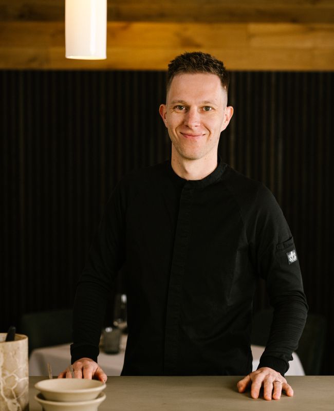 Para el chef Kaj Landman, cocinar es una forma de expresión: clara, equilibrada y siempre centrada en el sabor. Tras años en cocinas profesionales, entre ellas como sous-chef en el Restaurante L’Atelier en Gulpen, dio forma a su propio estilo: francés en esencia, pero abierto a la frescura de las influencias asiáticas y sudamericanas. En Holsterhof trabaja con productos de campos y bosques cercanos, creando menús que reflejan tanto técnica como sencillez. Sus salsas, texturas y su gusto por la contención dan personalidad a cada plato.