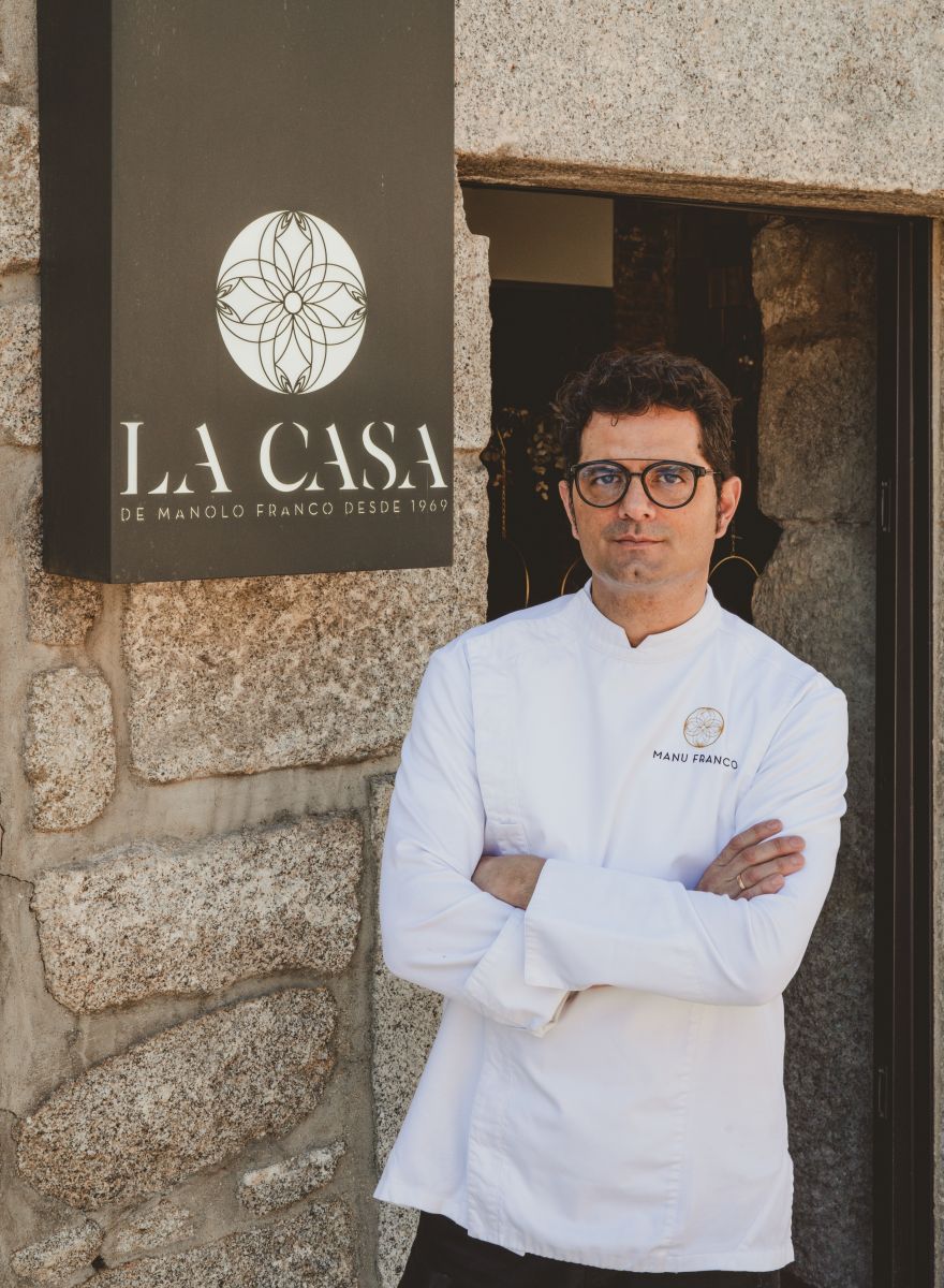 Antes de ser cocinero, Manu Franco pasó 20 años contando historias como periodista. Pero la atracción de Valdemorillo -y las palabras de su padre- le devolvieron al restaurante familiar. Tras formarse en Le Cordon Bleu, reimaginó Casa Manolo como un destino de alta cocina, consiguiendo una estrella Michelin en sólo cinco años. Su enfoque es personal e intuitivo, moldeado por el paisaje y la creencia de que la comida debe evocar emociones.