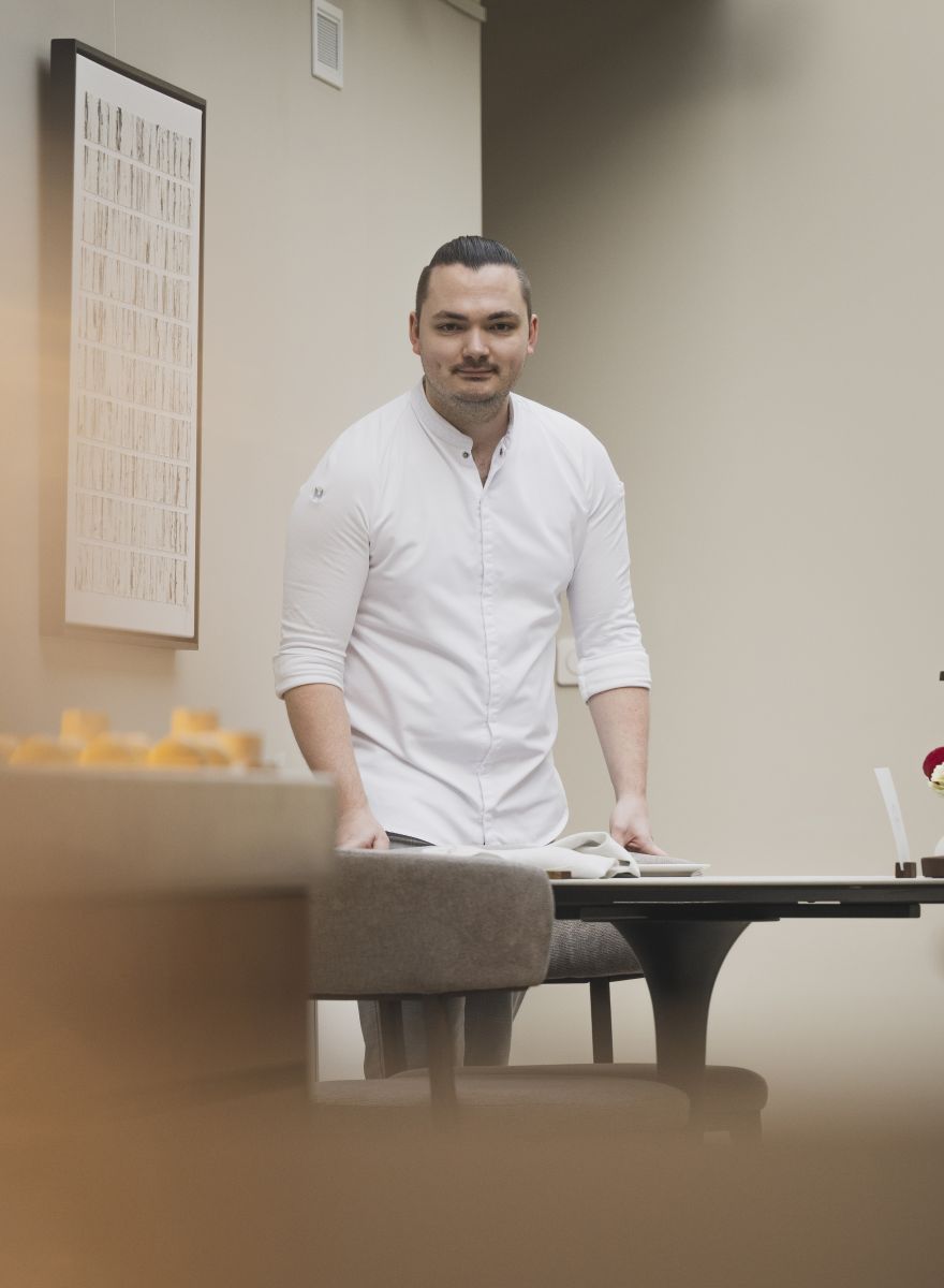 Desde sus primeros días en Kasteel Diependael hasta liderar su propia cocina, el chef Nicolas Van Kerkhoven aporta una gran experiencia y un amor por la innovación culinaria. Sus menús de temporada destacan los mejores ingredientes locales, preparados con precisión y creatividad, reflejando un profundo respeto por su oficio.