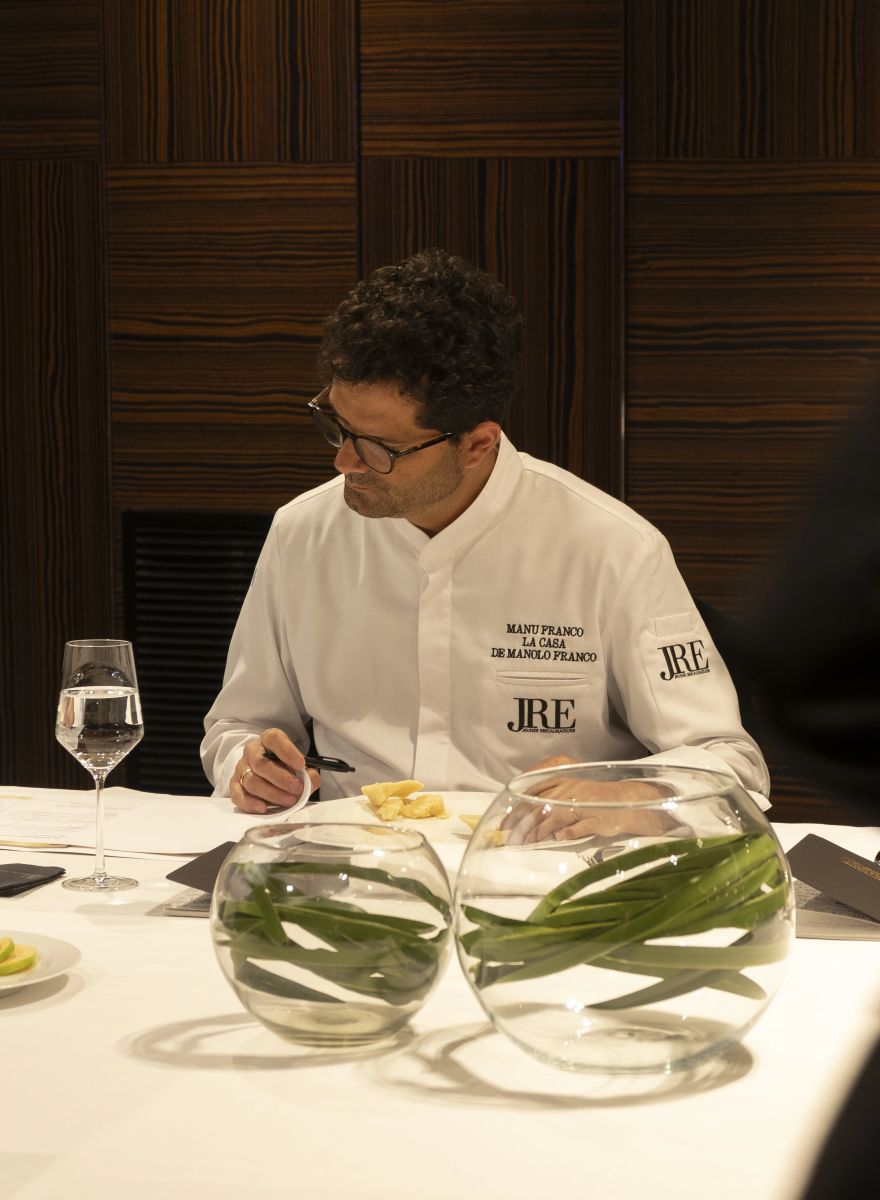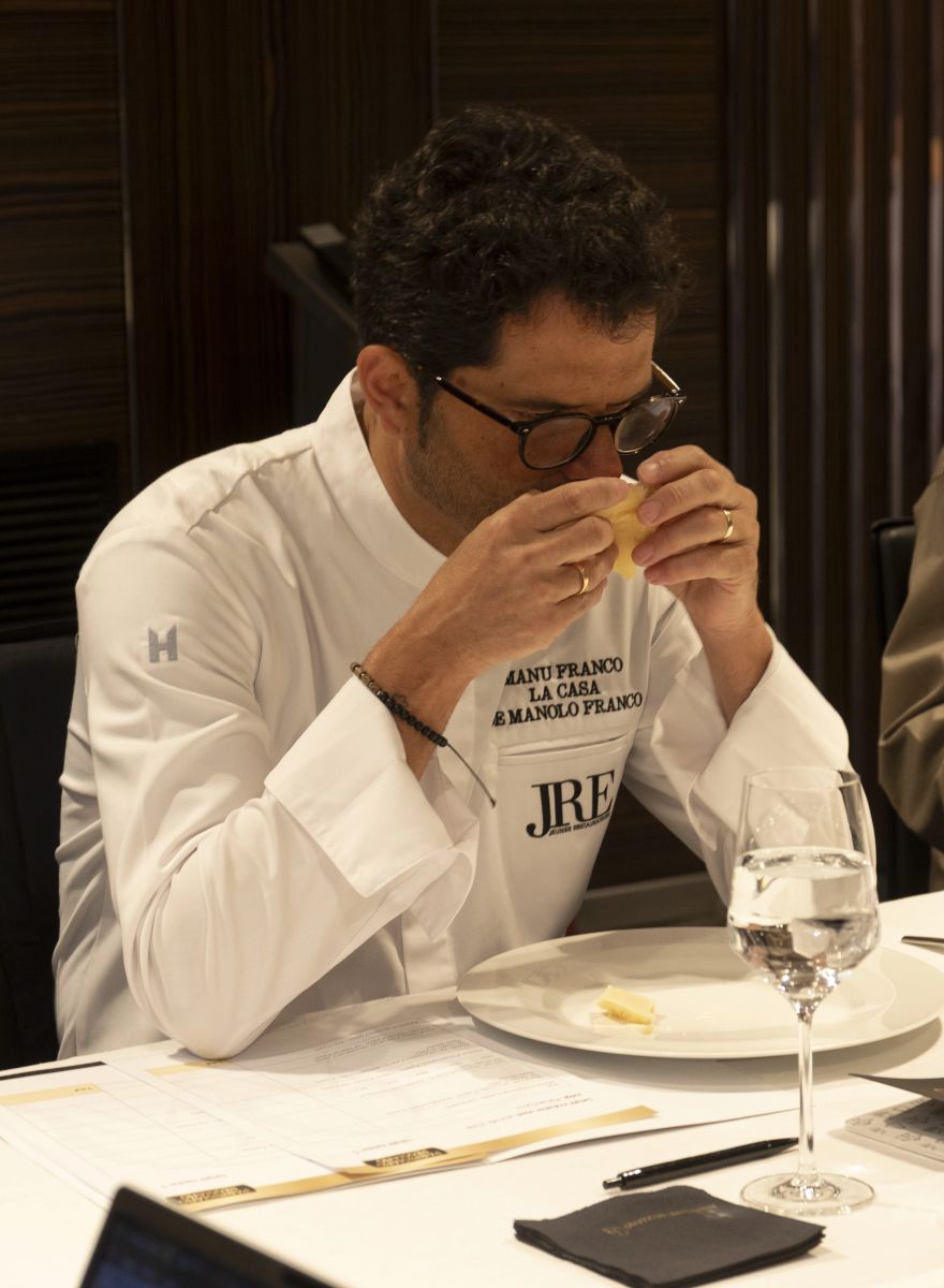 Manuel Franco ha sido uno de los jurados en esta edición, tras una invitación que surgió después de la Convención Nacional de JRE España celebrada el pasado septiembre en su restaurante. En ese encuentro, dentro de una iniciativa europea de JRE en torno al Parmigiano Reggiano, Borja Marrero, Seve Díaz y el propio Manuel crearon un menú especial con este queso como protagonista. A partir de ahí, llegó la propuesta de formar parte del jurado del Casello d’Oro.