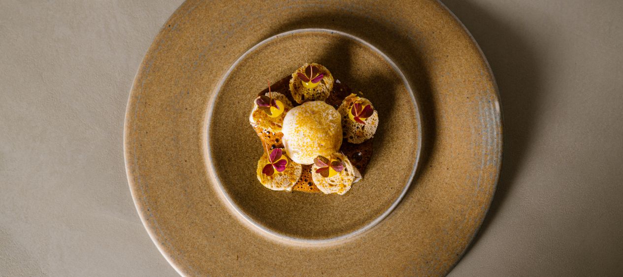 La cocina de Kaj Landman equilibra precisión y calidez. Con una base francesa e influencias de Asia y Sudamérica, construye platos en torno al ingrediente principal, usando contrastes sutiles y salsas refinadas para completar la experiencia. Su plato emblemático de mollejas con glaseado de cabernet sauvignon y salsa de bacon ahumado refleja su búsqueda de profundidad y detalle. Siempre que es posible, se abastece de productos cercanos: espárragos del pueblo, miel de apicultores locales y caza de la región de Eifel. Así crea platos que se sienten a la vez contemporáneos y conectados con el lugar.