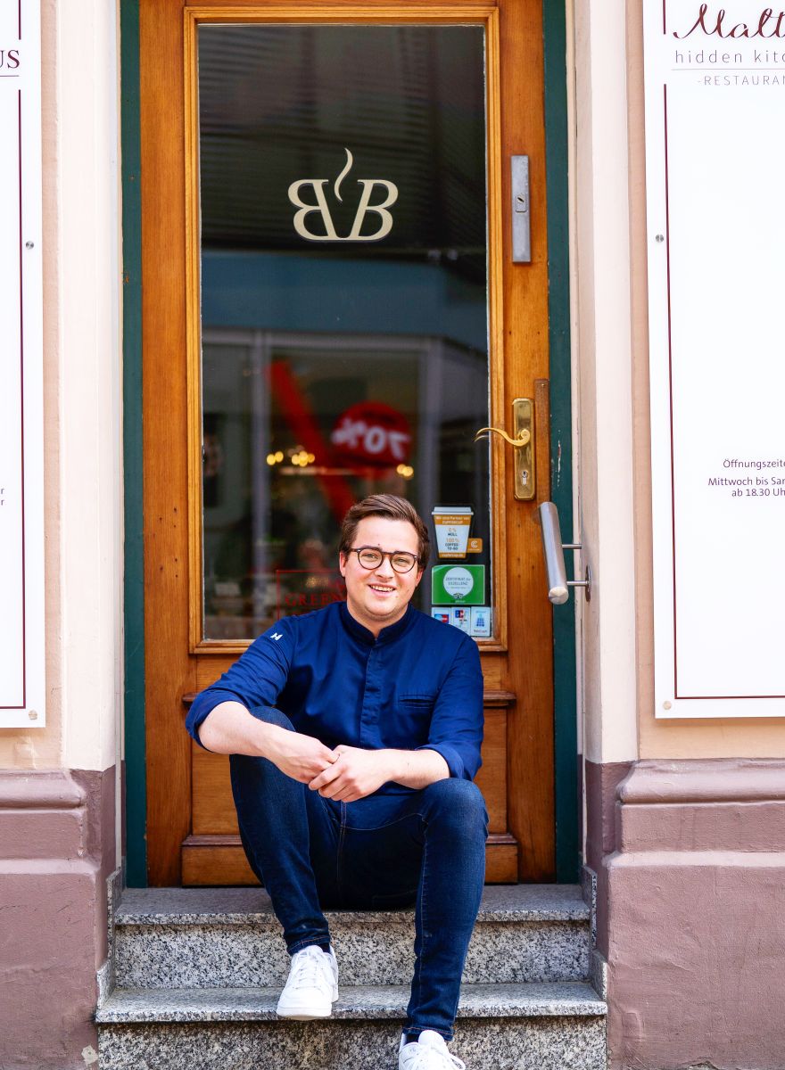 Le chef et propriétaire Malte Kuhn a utilisé son expérience pour créer le café-restaurant unique qu'est Maltes. De 2010 à 2013, il a suivi une formation de chef à l'hôtel Dollenberg avec le chef Martin Herrmann, puis a obtenu un double diplôme avec une spécialisation en gestion hôtelière. Malte a également travaillé à l'Althoff Seehotel Überfahrt sur le lac Tegern et au restaurant Lakeside de l'hôtel Fontenay à Hambourg. Depuis 2018, il s'est installé à Baden-Baden avec son concept double de café et de restaurant gastronomique, cuisine cachée. Sa cuisine est expressive, axée sur le produit et défie les concepts de saveur traditionnels.