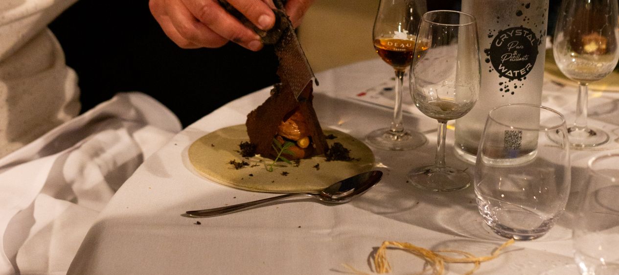 Et pour le dîner assis, les convives ont pu déguster un menu en 5 services, mettant en lumière le saumon Mowi, le foie gras de la maison Rougié, le Parmigiano Reggiano et la crème Debic, les fromages affinés de Philippe Olivier, et le chocolat de Colombie avec un dessert dédié.