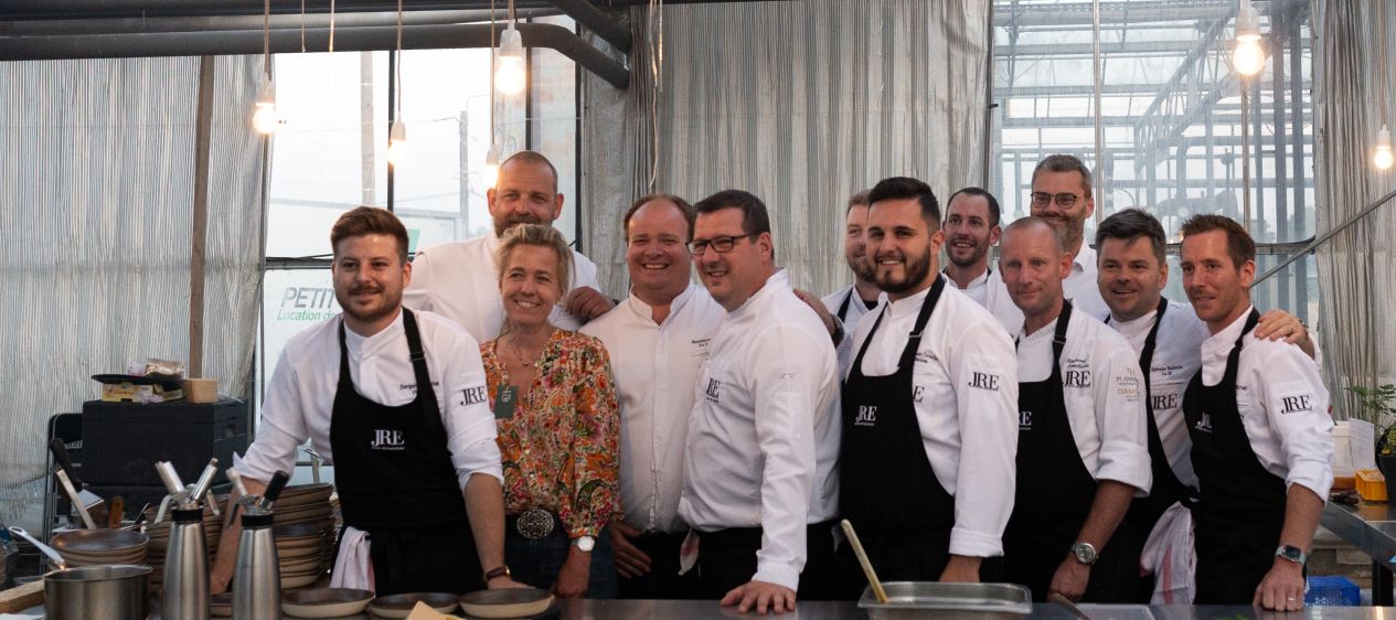 Ils étaient 9 Chefs membres du réseau JRE-Jeunes Restaurateurs à créer dimanche soir un magnifique dîner au coeur de la serre vitaminherb, à 10 minutes du coeur de Lille.