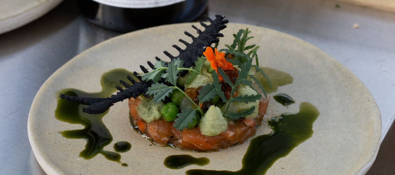 Pour l'occasion, les convives ont pu déambuler dans la serre, guidés par la fondatrice, Cécile Girerd-Jorry. Plusieurs amuse-bouche avaient été préparés par les Chefs, notamment sur la plancha bois Ofyr, comme le croque flétan fumé, pain de mie aux algues, agastache anisée et coriandre vietnamienne.