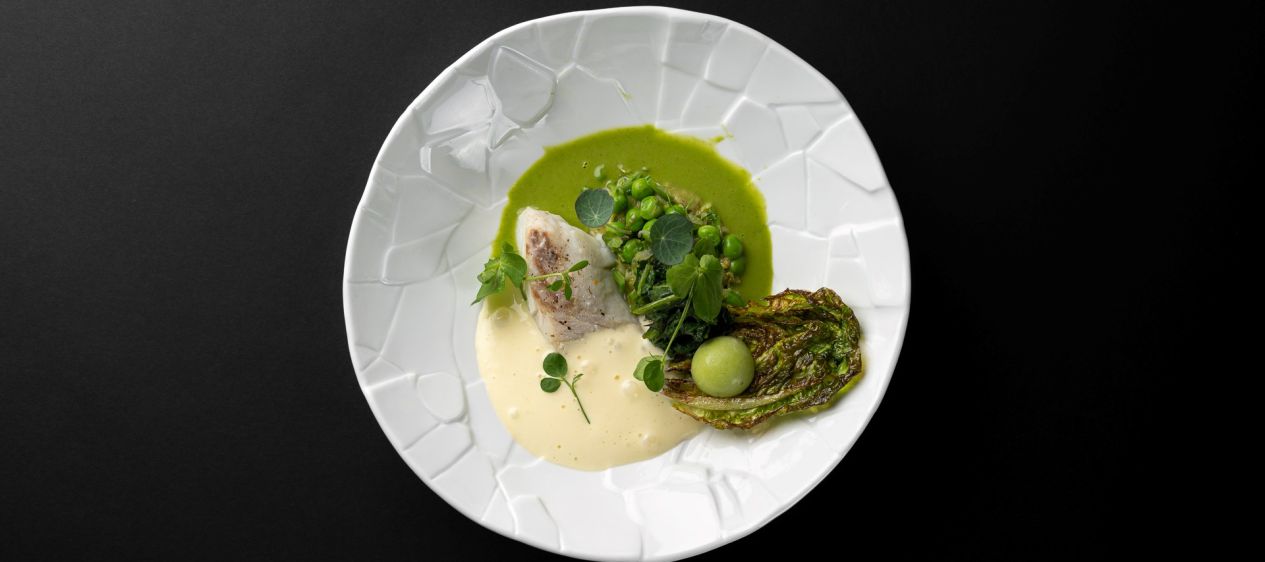S’il se définit comme « un professionnel curieux qui ne se prend pas au sérieux », nous avons trouvé dans ses assiettes une percussion qui travaille aussi sur la douceur. Ici, pas de décorations florales clinquantes, ses plats restent lisibles et dans la promesse du thème, et de manière personnelle et brillante, honnête, volontaire et nette : Asperges vertes, brocciu corse, boeuf Secreto, vinaigrette à l'huile de bergamote, gel de mandarine et pourpier, poutargue trikalinos ; Merlan de ligne ikejime rôti sur peau, asperges blanches de chez Stéphane Longlune, huître, saké et wasabi ou encore son magnifique Ris de veau et homard, béarnaise façon choron, jus concentré de crustacés, pommes paille et cresson de fontaine.