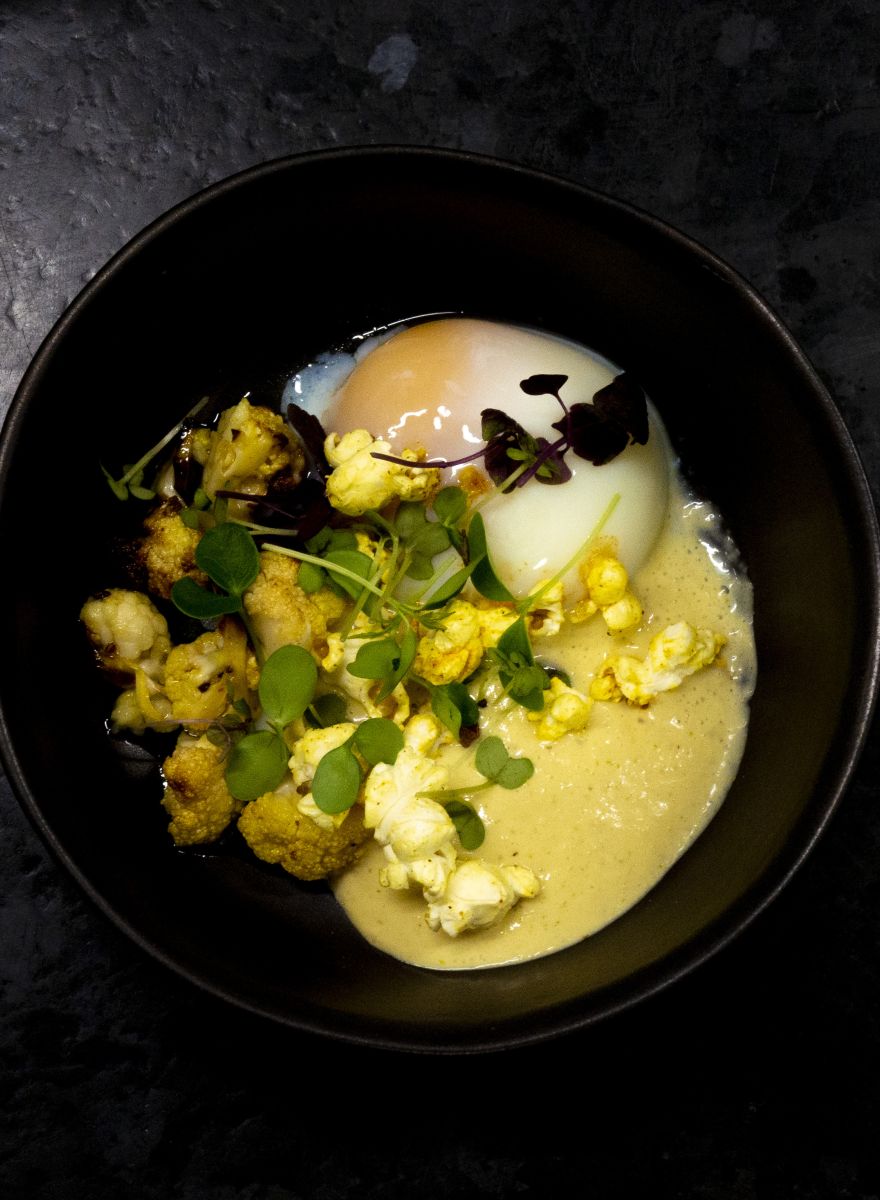 Oeuf parfait cuit à 64°, chou fleur, curcuma, béarnaise