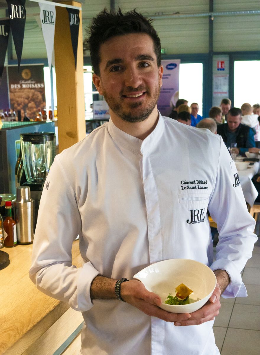 Le jeune Chef Clément Bidard fait partie d'une famille de restaurateurs, depuis 5 générations, implantée dans le territoire de l'Ain. L'établissement historique, à l'Abergement-Clémenciat, est celui où Clément laisse libre cours à sa créativité : le Saint-Lazare. En 2019, Clément s'investit également dans un autre projet, celui de l'AéroCafé, une brasserie moderne à Mâcon, tout près de l'aéroclub, avec une carte bon marché, des produits respectés, un cadre convivial avec un "rooftop"... C'est là qu'il a reçu ses confrères JRE le 27 mars, afin de vivre un moment de partage, de bienveillance, de découverte culinaire tous ensemble.