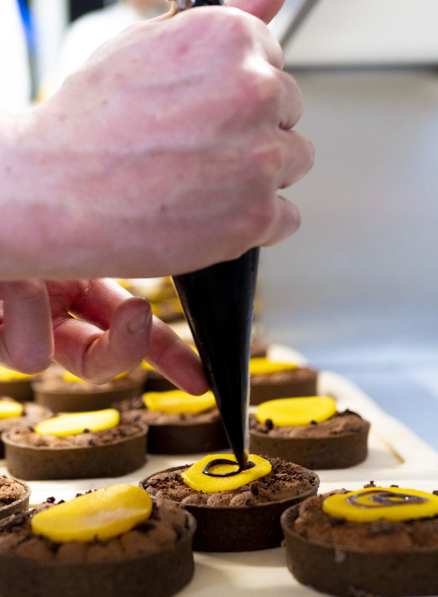 Tartelette chocolat de Colombie, crème patate douce, mangue et orange et rhum caribean XO