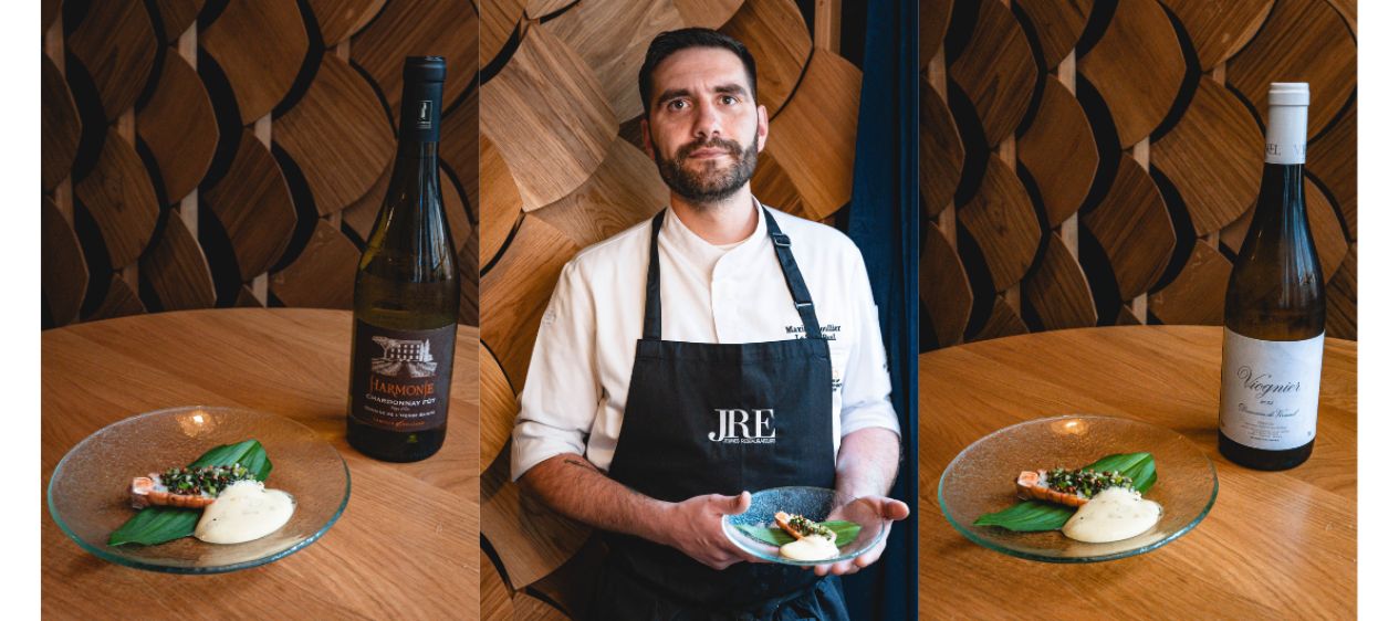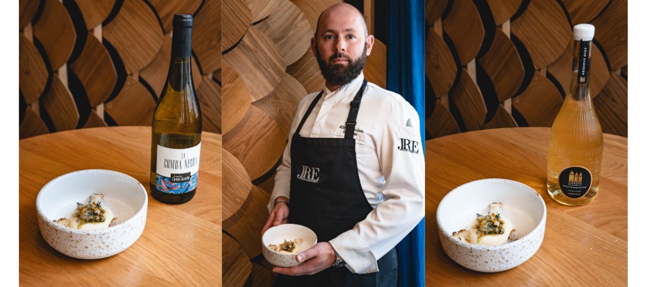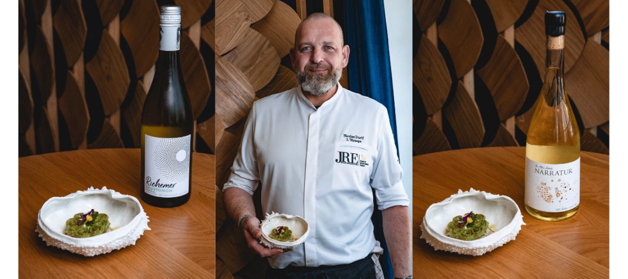 À La Pomme d’Or, à Sancerre, le jeune couple, Justine Heuzé et Yann Tournier, partagent l’amour de leur terroir breton et offrent une expérience entre sentier des douaniers et marée montante, accompagné de vins de Sancerre, un beau voyage sensoriel attend les convives. Cuisinier novateur à la créativité sans limite, Yann Tournier fait voyager sur sa terre natale entre iode et estran, poussé par un vent des alizés, une cuisine identitaire. Justine et Yann ont donc accueilli la famille JRE, partenaires, journalistes dans leur restaurant pour l’improvisation culinaire de l’année!