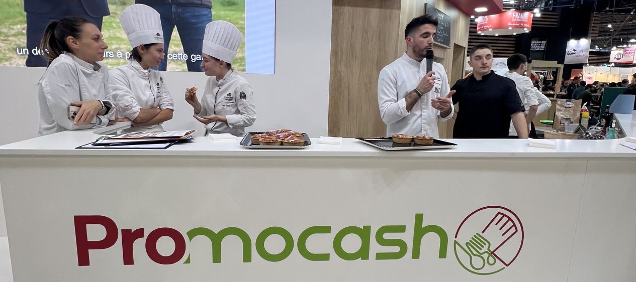 Notre partenaire Promocash a accueilli nos chefs Pricillia Lebon, restaurant L'Ogustin, Clément Bidard, restaurant Le Saint-Lazare, ainsi qu'Aurélien et Benjamin Michel, chefs- traiteur gastronomique Popâ, pour présenter des recettes innovantes à partir des produits Promocash.