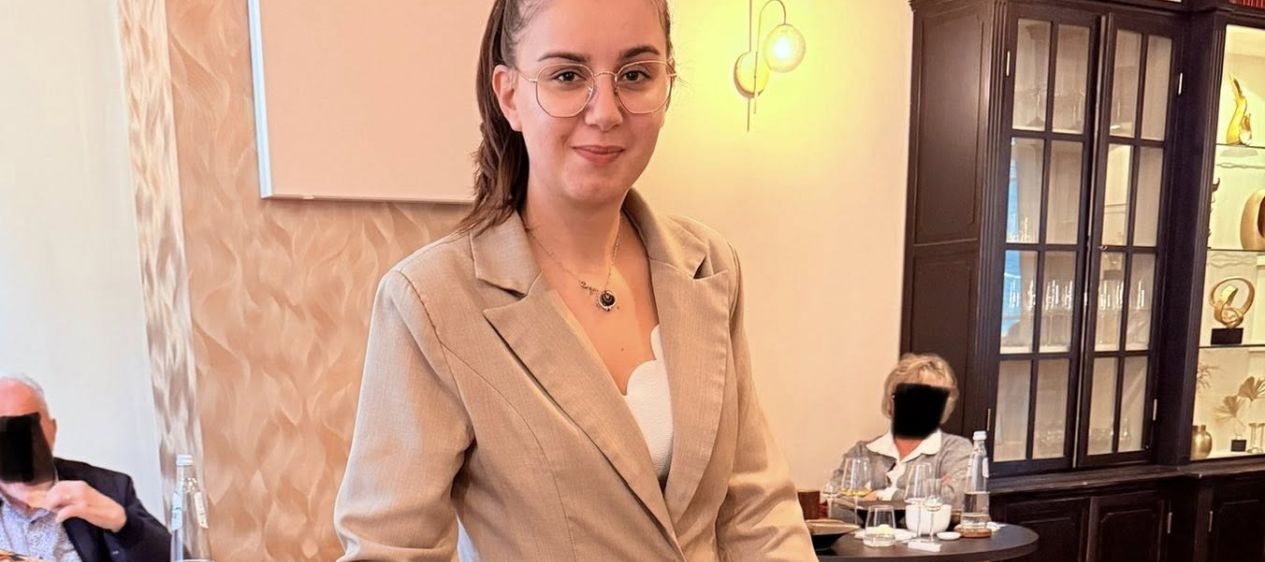 Toute l’équipe de salle est splendidement habillée de costumes de tissu beige ressemblant à du lin, juste magnifiques. Le service est précis, attentif, souriant, très pro. Le niveau est fort élevé.
