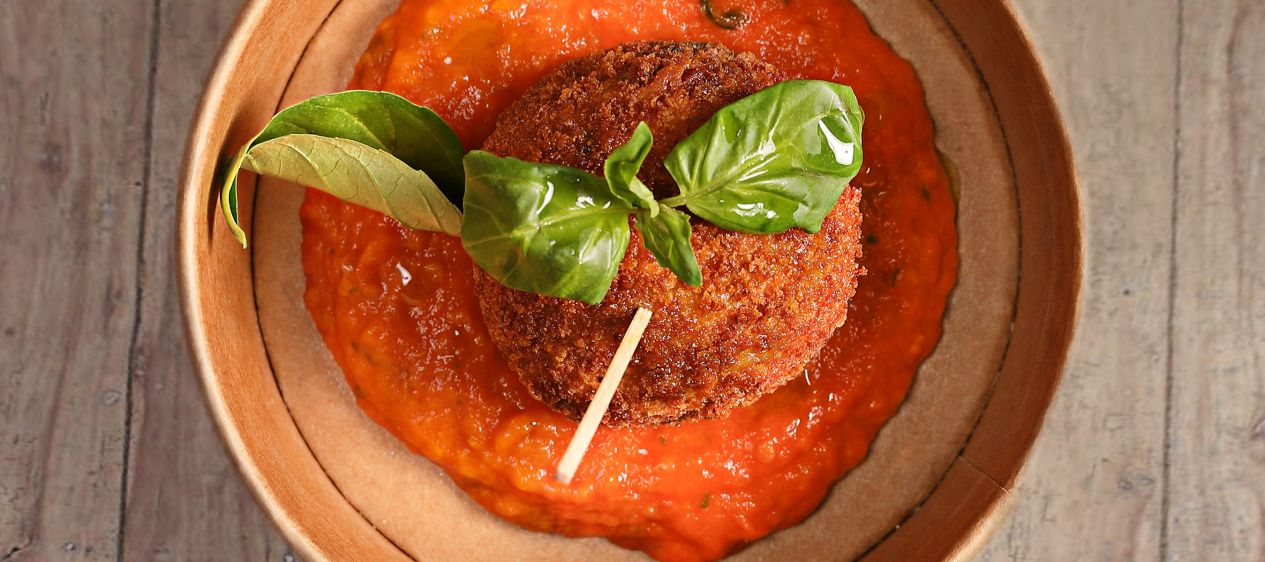 Arancini d’artichaut et coppa, sauce tomate au basilic
