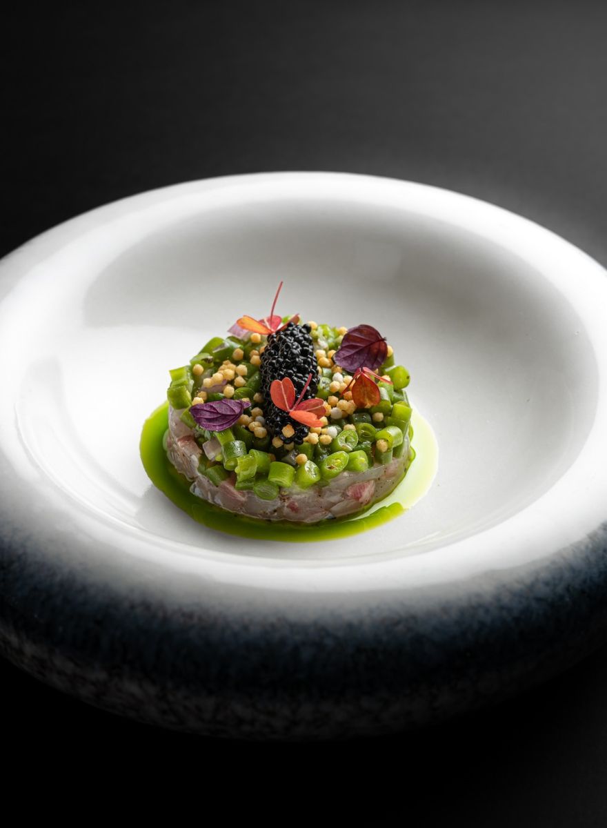 Son geste est précis, sa main inspirée, son regard entièrement tourné vers le produit. Chaque assiette raconte une histoire, chaque plat vibre d’une énergie sincère. Ici, rien n’est démonstratif, tout est habité.