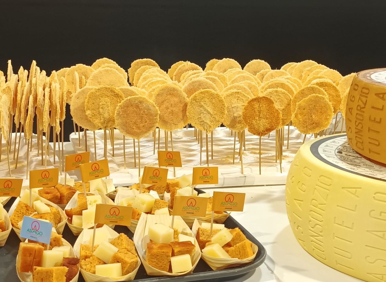 Bottoni farciti di Asiago DOP stravecchio in brodo di Asiago DOP vecchio o Panna cotta all’Asiago DOP fresco con frutti rossi e crumble all’Asiago DOP vecchio dello chef Alberto Basso; Risolatte funghi e Asiago DOP mezzano croccante, oppure Coppa di maiale affumicata, crema di sedano rapa e fonduta di Asiago DOP stravecchio dello chef Davide Botta; La caesar salad con bianco di pollastra affumicato cotto a bassa temperatura, guanciale, nocciole, mirtilli e foglie di Asiago DOP fresco riserva, Tortelloni alla fonduta di Asiago DOP fresco, con misto di funghi e pesto al basilico dello chef Renato Rizzardi; Risotto, estratto di cicoria, fonduta di Asiago DOP mezzano e polline in fiore, Stracotto di capriolo con crema di erbe spontanee, cipolla rossa in agrodolce dello chef Paolo Trippini.