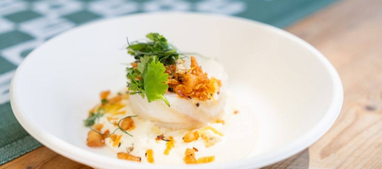 A deliziare i numerosi presenti, in rappresentanza JRE-Italia, il nostro Chef Fabio Mecchina, Soul Restaurant, che ha letteralmente saputo conquistare i palati con un esempio della sua cucina, dimostrando ancora una volta la sua maestria culinaria: un’originale rivisitazione: Fish&Chips 2.0, merluzzo in olio cottura, spuma di patate al lime e una misticanza di erbe aromatiche per un piatto giocato su delicatezza e contrasti.