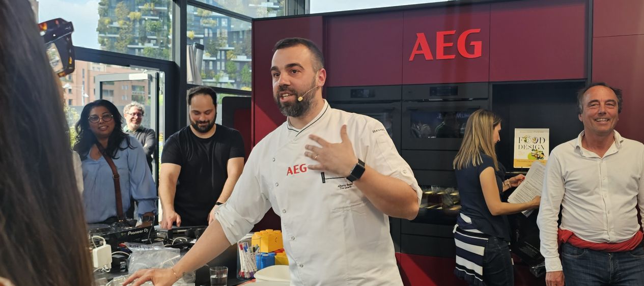 La cucina è stata quindi il canale non solo per regalare sensazioni gustative con i piatti realizzati proprio davanti al pubblico presente, ma anche per raccontare e mostrare le peculiarità degli elettrodomestici AEG.