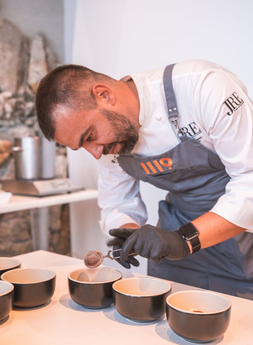 A deliziare i palati dei presenti, le preparazioni di tre Chef JRE-Italia, in un susseguirsi di assaggi gourmet all’interno della stazione di Punta Helbronner: Alberto Basso, ristorante Trequarti (Val Liona – VI); Dario Guidi, Antica Osteria Magenes (Gaggiano – MI); Federico Pettenuzzo, La Favellina (Malo – VI).