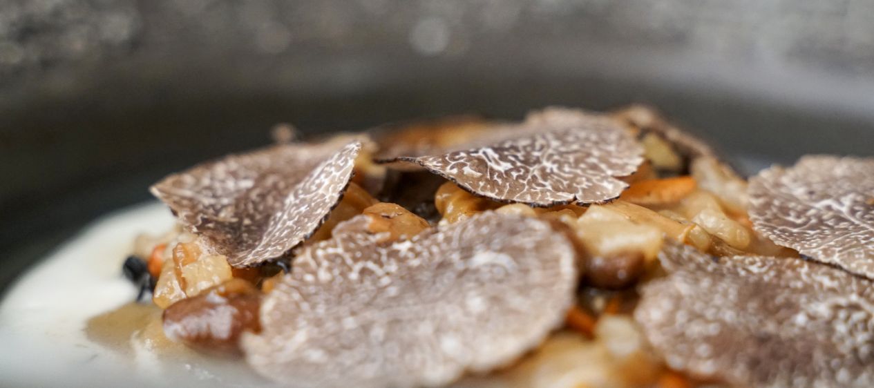 Je begint het feest met de zalmcocktail, een succesgerecht uit de bistro. Vervolgens een niet te missen ONE classic waar gasten ieder jaar opnieuw voor terugkeren: ONE’s paddenstoelenrisotto die je indien gewenst kunt afwerken met zwarte wintertruffel. Het warme gedeelte sluit je af met een mooi stukje hertenfilet met cacao, aardappelmousseline en geglaceerde bospeen. Tot slot, het appeltje waar iedereen het na jaren nog steeds over heeft; ONE’s gouden appeltje!