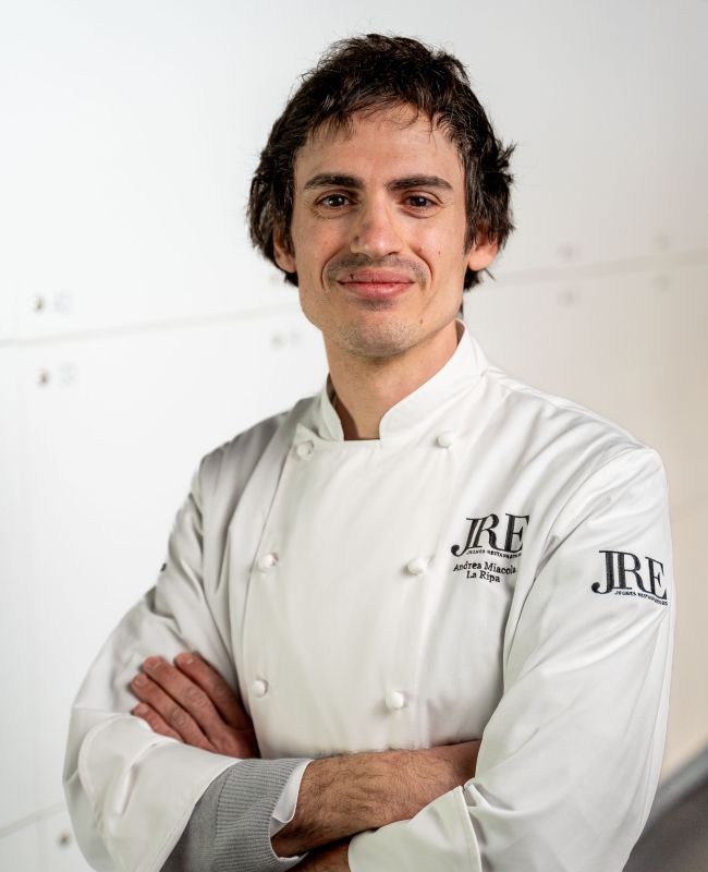 De keuken van Andrea Miacola is gevormd door zowel zijn reizen als zijn wortels. Na zijn opleiding aan ALMA en ervaring bij chefs als Cracco, Alajmo en Boer, keerde Andrea terug naar Vieste om samen met zijn broer leiding te geven aan La Ripa. Zijn stijl is doordacht en expressief – vaak experimenteel, maar altijd geworteld in herinnering. Of hij nu wortels uit Polignano combineert met hazelnoten of grijs konijn herinterpreteert met Thaise bouillon, Andrea’s gerechten behouden een gevoel van plaats terwijl ze invloeden dragen van Portugal tot Scandinavië. Het is een keuken die nieuwsgierigheid, respect en een stille zin voor avontuur weerspiegelt.