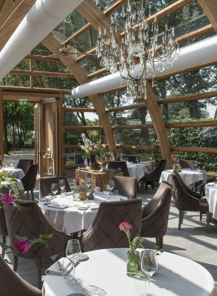 Doetinchem, NederlandIn de Achterhoek, aan de rand van de stad Doetinchem, ligt restaurant Orangerie De Pol. Deze prachtige eetgelegenheid ligt midden in een bos. Wat nog unieker is, is dat het restaurant is gevestigd in een glazen kas, met uitzicht op een prachtige tuin met fruitbomen.