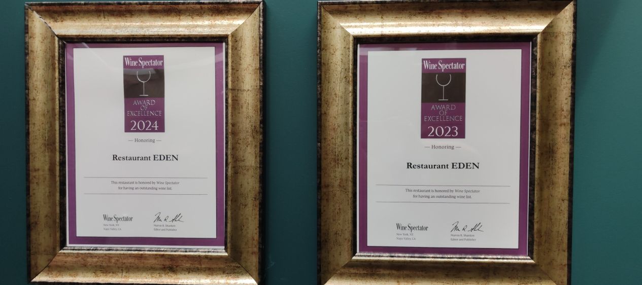 Fantastisch nieuws uit Valkenswaard want voor het tweede jaar op rij is Restaurant Eden in het bezit van een 'Award of Excellence' uitgereikt door het toonaangevende Wine Spectator magazine.