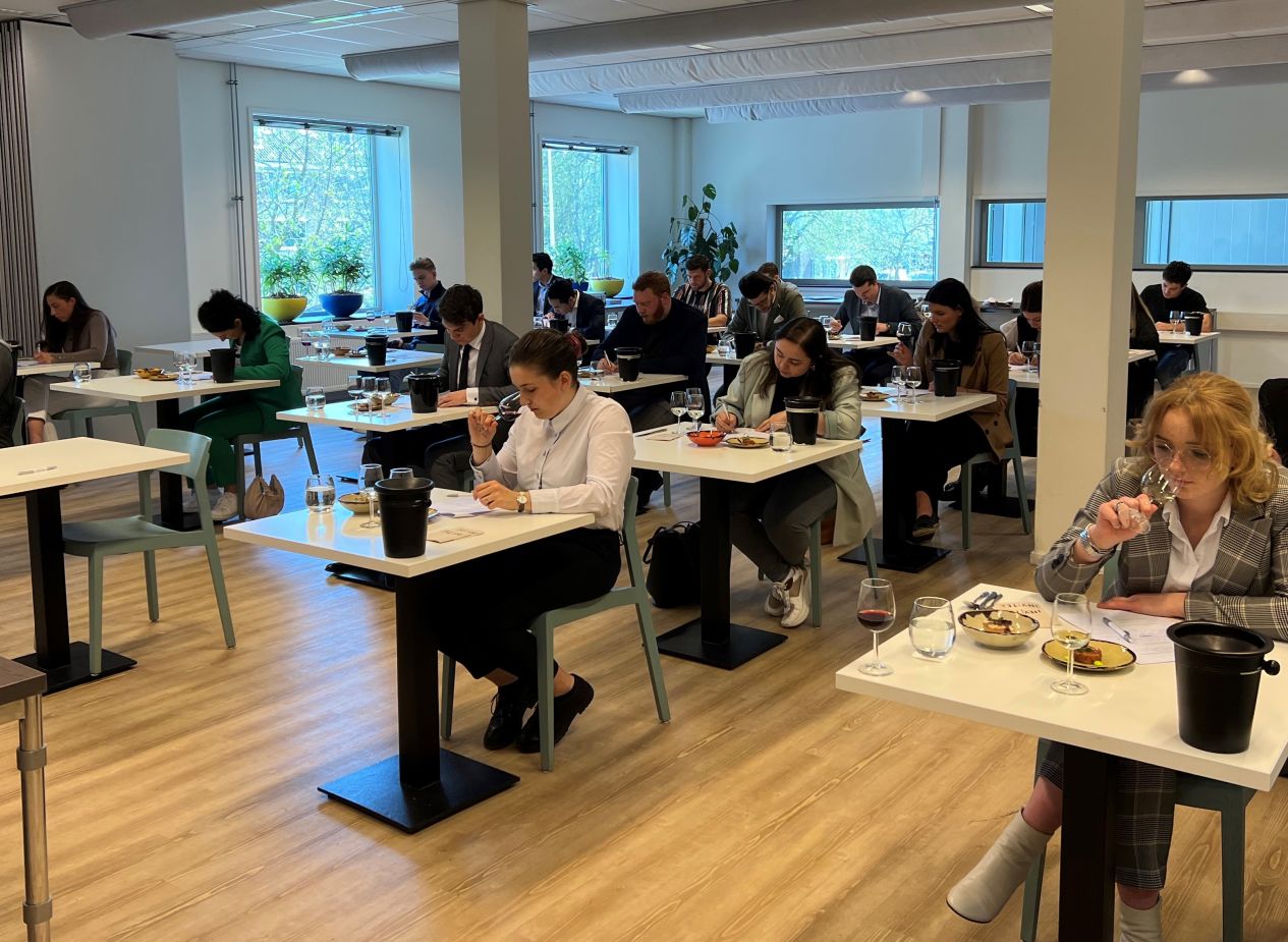“We zijn enorm blij dat we in deze tijden van personeelstekorten binnen de horeca toch weer zoveel aanmeldingen kregen. Als juryvoorzitter word ik blij van zo’n mooie lijst met enthousiaste kandidaten. Dit jaar hebben we de lat bij het theoriegedeelte iets hoger gelegd. Wat opviel is dat de deelnemers over het algemeen een goede wijnkennis hebben, maar dat ze moeite hadden met het herkennen van de vijf gedistilleerde dranken”.