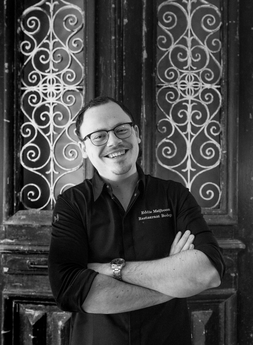 Wie naar het CV van de 26-jarige Eddie Meijboom kijkt, ziet direct zijn ambities. Sinds hij tien jaar geleden aan zijn koksopleiding begon, kookte de Haarlemse chef in keukens die toonaangevend zijn binnen de Nederlandse gastronomie: ML onder Mark Gratema, Fris onder Rick May, Cheval Blanc onder Huub van der Velden en La Rive onder Roger Rassin. In 2017 won hij de titel Talent van de Toekomst en hij behaalde de titel SVH Gezel Meester. Na zijn studie keerde Meijboom terug naar Fris als sous-chef, waar zijn oud-leermeester en nu goede vriend Rick May al snel de potentie zag om Eddie nog verder te laten ontwikkelen. Samen openden ze in 2020 het modern Spaanse restaurant Bodega, waar Meijboom nu als chef-kok in de keuken staat. ‘De coronaperiode was taai. Maar ook dat wat leerzaam. Het maakte me alleen maar meer gedreven om me verder te ontwikkelen als chef.’