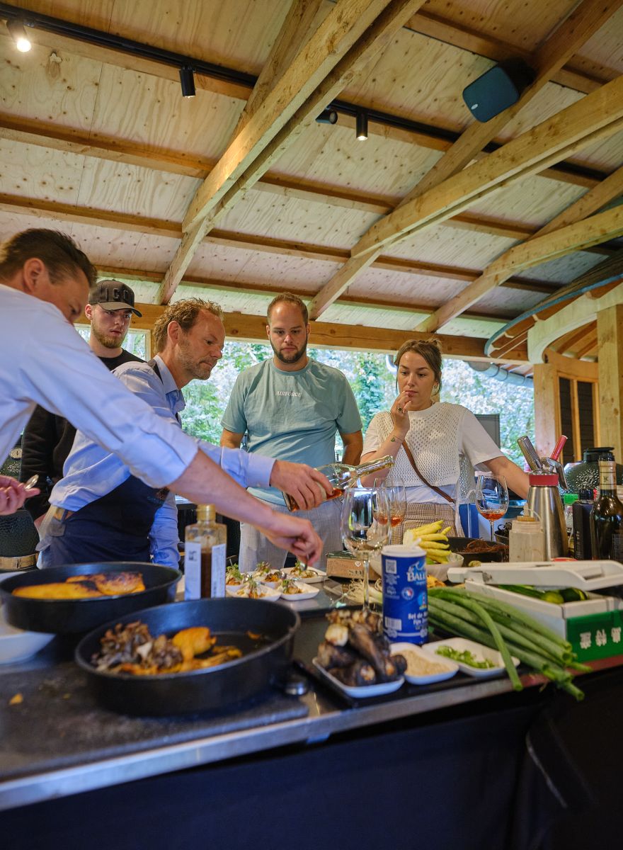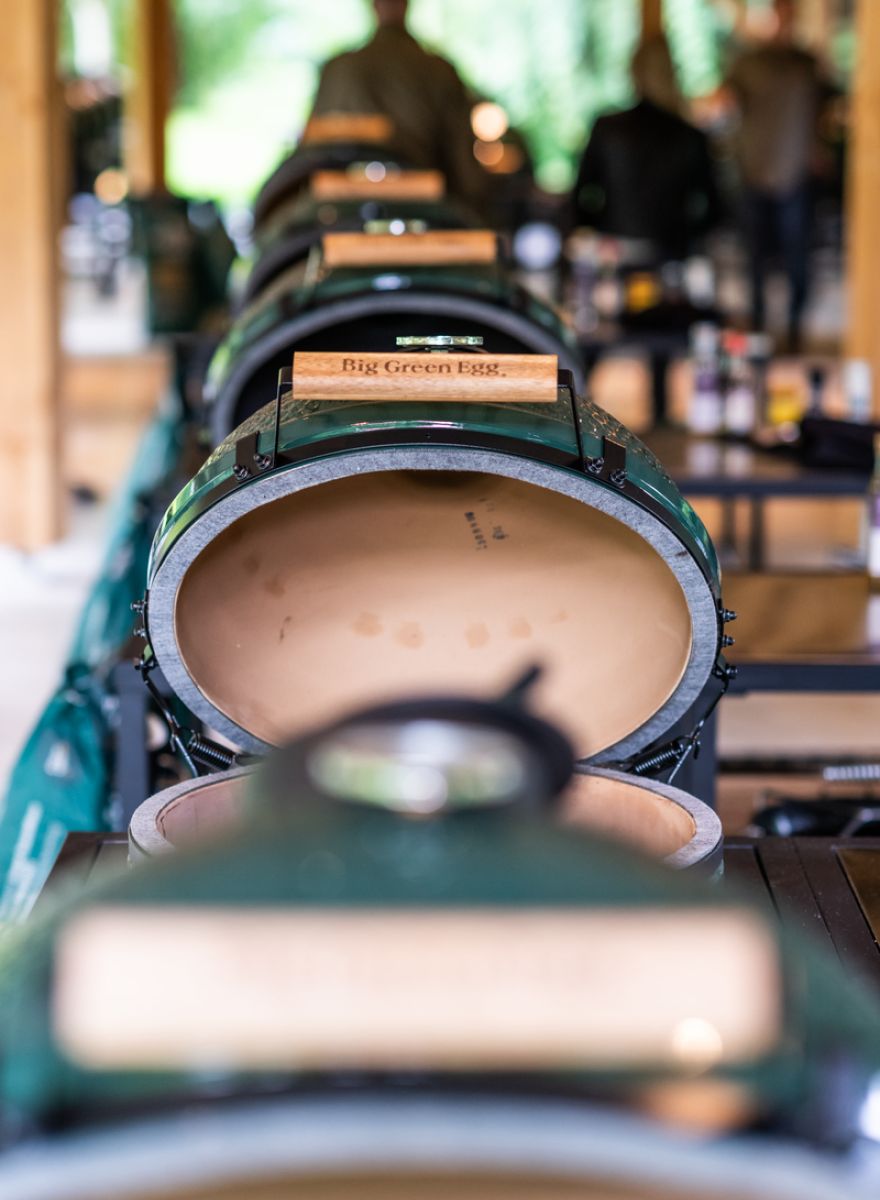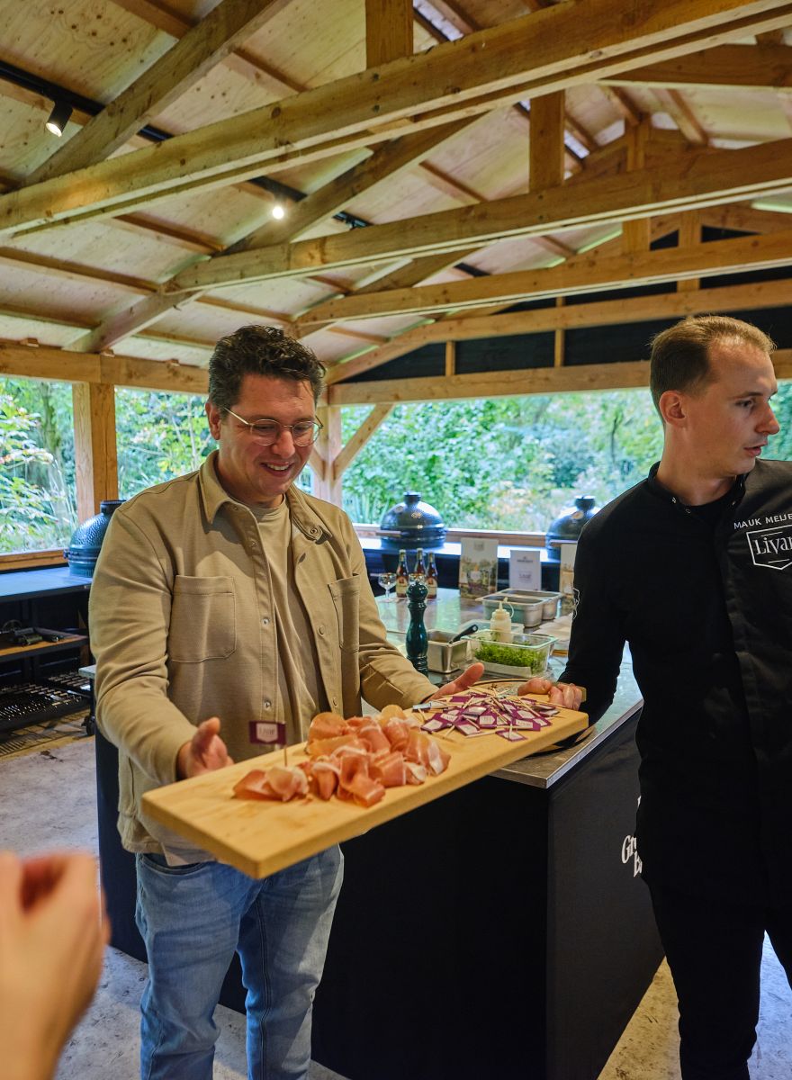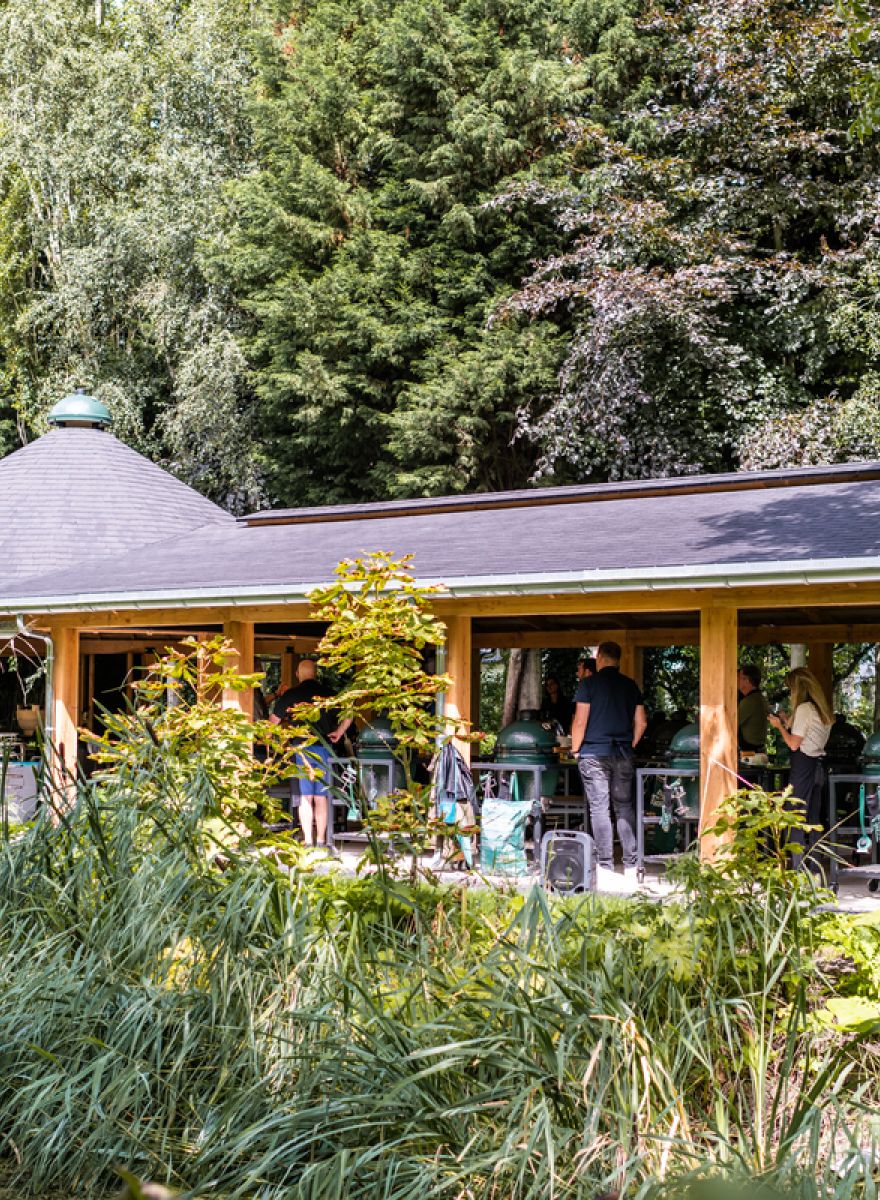 De leden werden ontvangen op Landgoed Arcadia, met maar liefst acht hectare grond aan puur natuur, inclusief een mooie vijver en 600 walnotenbomen. Dit enorme landgoed huisvest vanaf 2021 de officiële Big Green Egg workshop ruimte. Onder een grote overkapping staan normaal gesproken, voor 50 personen, elk een Big Green Egg Large met voor ieder een eigen werkblad. Voor deze dag werd de workshop ruimte omgetoverd tot inspiratiecentrum voor JRE-Inspired by.