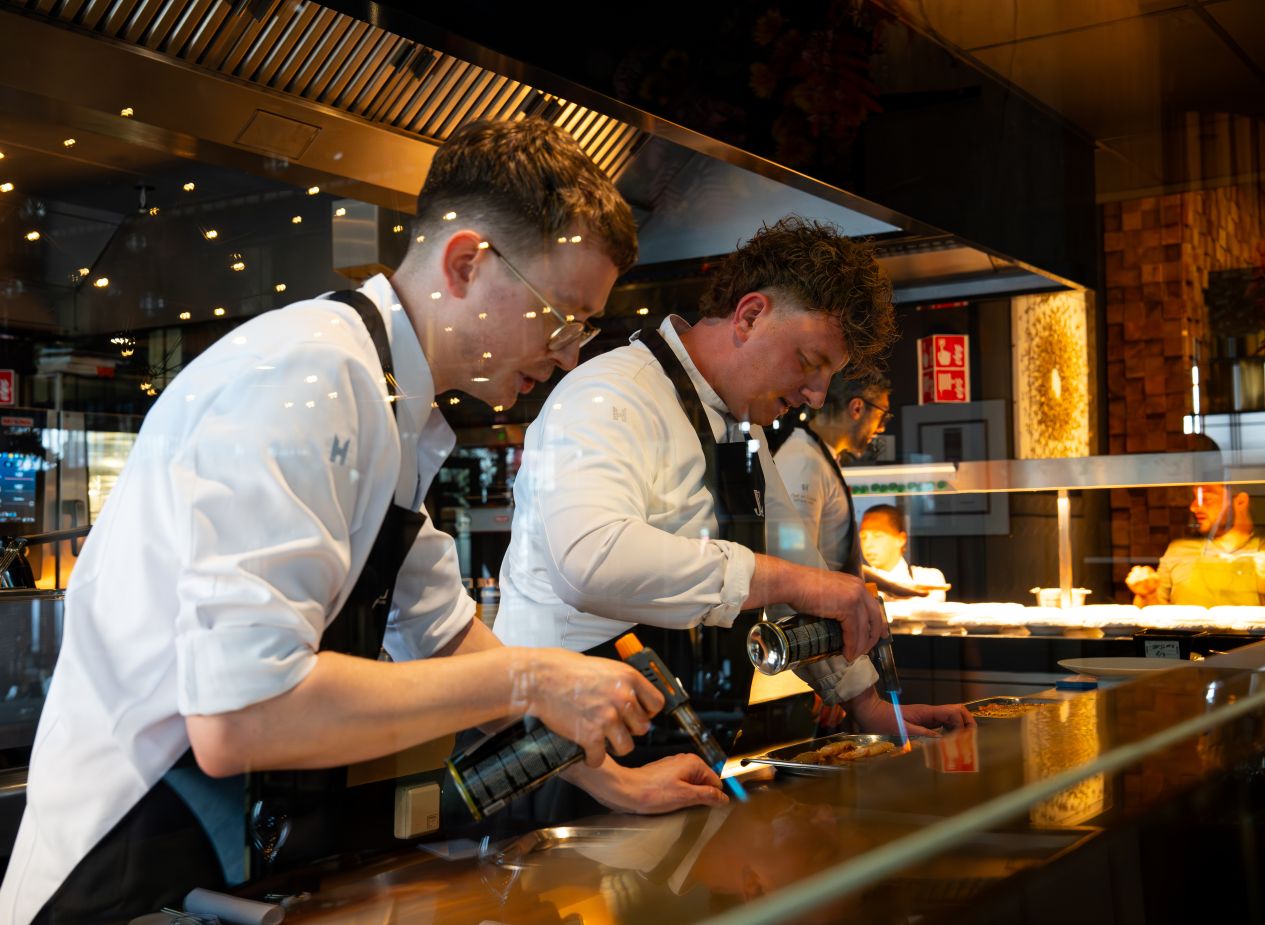De lunch werd verzorgd door de nieuwe JRE-leden, samen met de gastheren van de middag: JRE-chef Sofiane Bons en maître Pieter Timmer van Restaurant Joelia. Bons werd in februari door Gault&Millau uitgeroepen tot Jonge Chef van het Jaar 2026.