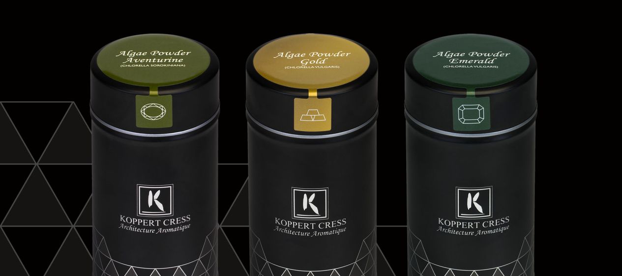 Koppert Cress lanceert begin dit jaar een exclusief assortiment aan premium kwaliteit algenpoeders. Professionals gebruiken het liefst algenpoeders vanwege de smaak, kleur, gezonde eigenschappen en is zeer geschikt voor meerdere toepassingen en combinaties, van hartige gerechten tot zoete desserts. Met het nieuwe assortiment van Algae Powder Aventurine, -Emerald en - Gold ontstaan er talloze nieuwe mogelijkheden en het is een verrijking van het Koppert Cress gamma.