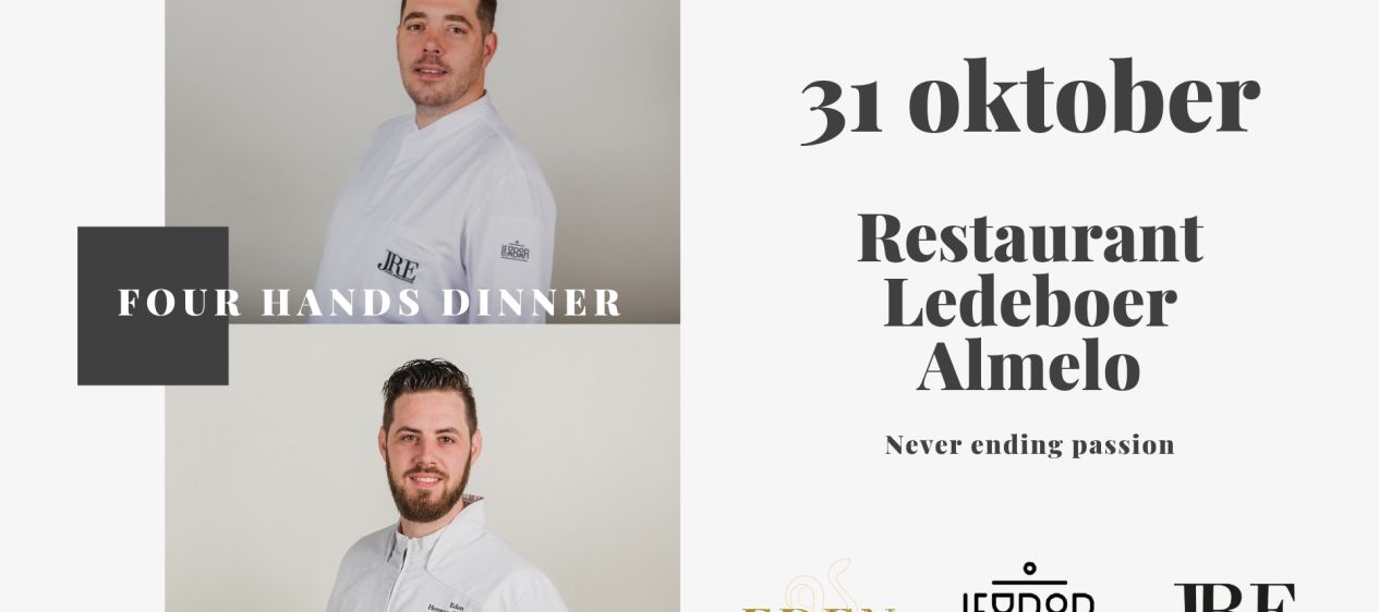 Zodoende slaan Restaurant EDEN en Restaurant Ledeboer de handen in een. Op zondag 31 oktober 2021 komt Herman Cooijmans van Restaurant Eden naar Almelo om daar te koken met het team van Restaurant Ledeboer. Gezamenlijk presenteren ze daar een 6 gangen menu, met daarbij het beste uit beide keukens. De spannende en gewaagde combinaties van restaurant EDEN, gecombineerd met de herkenbare, smaakvolle en uitermate gebalanceerde gerechten van Restaurant Ledeboer.