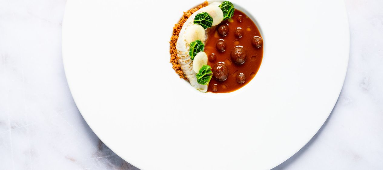 “Omdat we een verspillende sector zijn, gebruik ik zoveel mogelijk van het product in mijn gerechten. We serveren dus niet alleen kaviaar, maar ook de steur. En van de aardpeer telen we niet alleen de knol, maar koken we ook honing van de bloesem. Op die manier kunnen we een beetje teruggeven van wat we nemen. Ik hoop dat jullie genieten van de gerechten, maar bovenal van elkaar!”