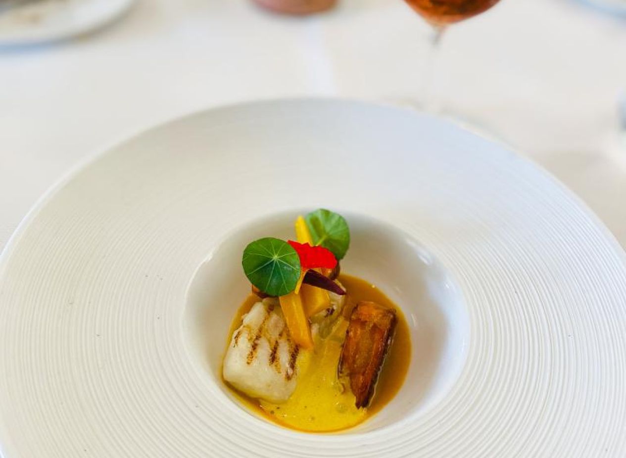 Het volgende gerechtje zindert nog steeds na. Gewoon door de heerlijke eenvoud: een lekker stukje grietbot met jus van mossel en worteltjes werden naast alweer een Belgische biertopper geplaatst: de Duvel Barrel Aged 2017 die gelagerd is geweest op bourbon vaten. Schitterend!