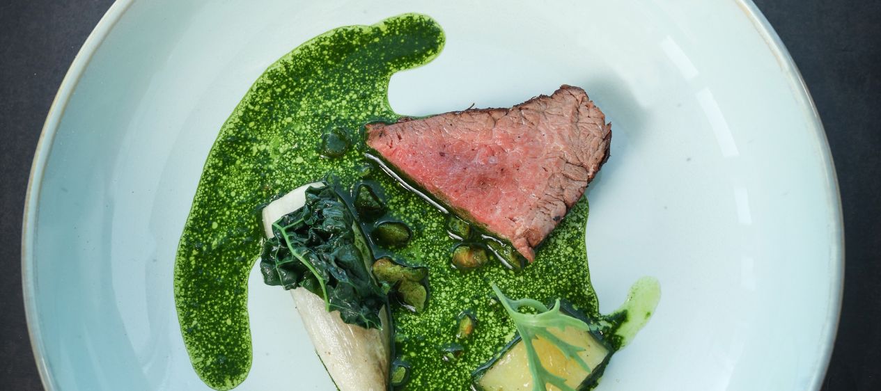 Waterbuffel met beurre noisette van palmkool en witlof