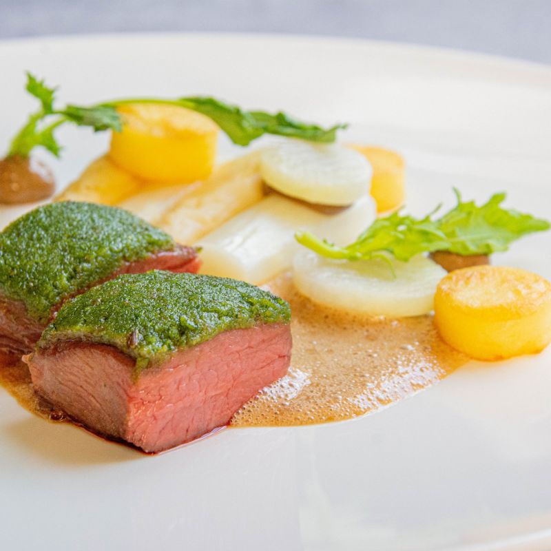 Enkel gebruikmakend van de beste streekproducten van lokale boeren, tovert chef-kok Bjorn Massop samen met keukenchef Jennifer Bos deze ingrediënten om tot moderne, elegante gerechten. Na jarenlange ervaring in toprestaurants realiseert Bjorn nu hier zijn droom door eigentijdse gerechten te bereiden en er een unieke Achterhoekse draai aan te geven. Favoriet op de kaart is de Beet Wellington: de bieten worden omwikkeld met shiitake hachee, op smaak gebracht met Hollandse Tomasu soja uit Rotterdam en spitskool uit de tuin van Ivo uit Hummelo. Het deeg maken ze van tarwebloem, afkomstig van De Slaege in Silvolde en de eieren van Pluimveehouderij Tomesen. De jus is gemaakt van een mix van pekelvocht van de bieten, geroosterde afsnijdsel van de biet, bietenjus en lavendel.