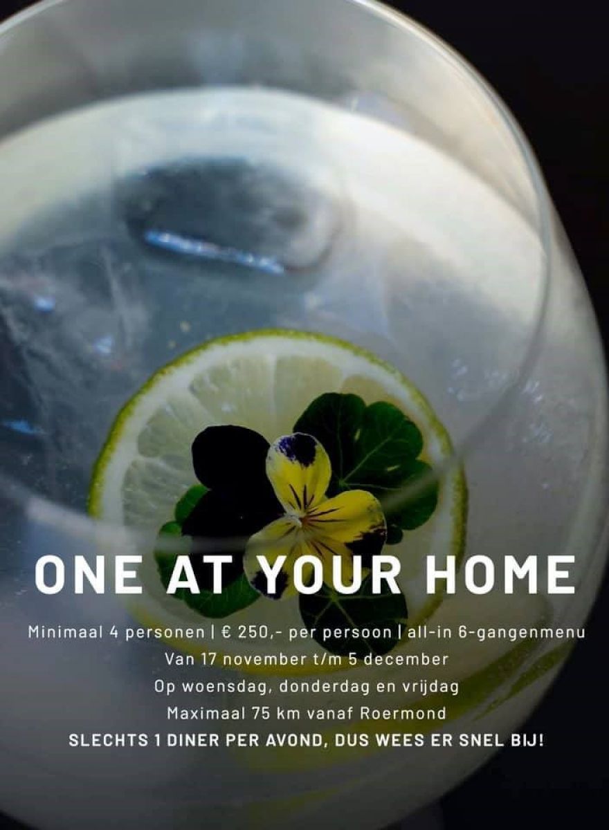 In de stad Roermond ligt een oude fabriek, omgetoverd tot een ontwerpersdroom. Met zachte verlichting en designstoelen krijgt het rauwe karakter van een oud historisch pand een moderne touch. Een smaakvol gecomponeerde omgeving die perfect past bij de culinaire creaties van ONE. Het restaurant beschikt over een fantastische loftruimte voor private dining en een bar. Bovendien beschikt de keuken over een chef's table die plaats biedt aan maximaal vijf gasten tegelijk, zodat u de show kunt zien ontvouwen. Naast het binnengedeelte heeft ONE ook een prachtig buitenterras aan het water. De perfecte plek om te genieten van een aperitief als start van uw avond. Of kom tot rust met koffie en een digestief om uw culinaire ervaring compleet te maken.